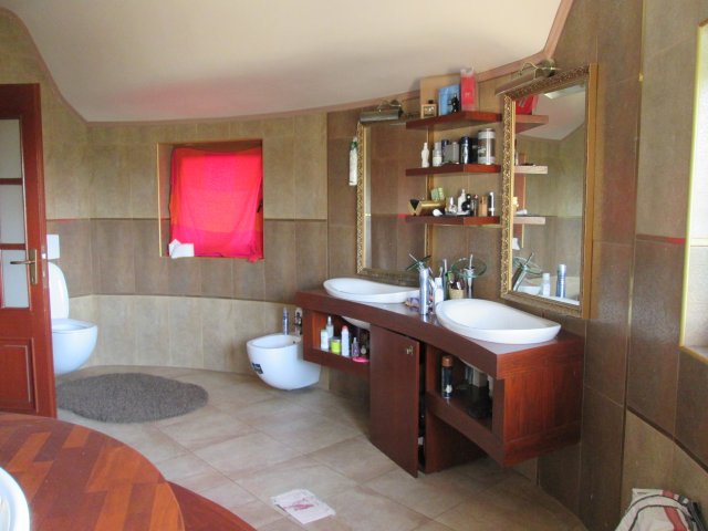 VILA D+P+E SPECTACULOASA CU FOISOR SI PISCINA ZONA PARC. Demisolul are: o bucatarie cu sufragerie, spatiu de relaxare cu crama, baie, camera tehnica cu spalator, baie de serviciu. Parterul : garajul dublu, hol mare, living cu dining cu iesire pe terasa, bucatarie, baie. Etajul: trei dormitoare cu bai si dressing fiecare, cel matrimonial are o s= 50 mp cu iesire pe terasa. SAU FACUT UNELE MODIFICARI LA PISCINA, CURTE, BARBEQUE.