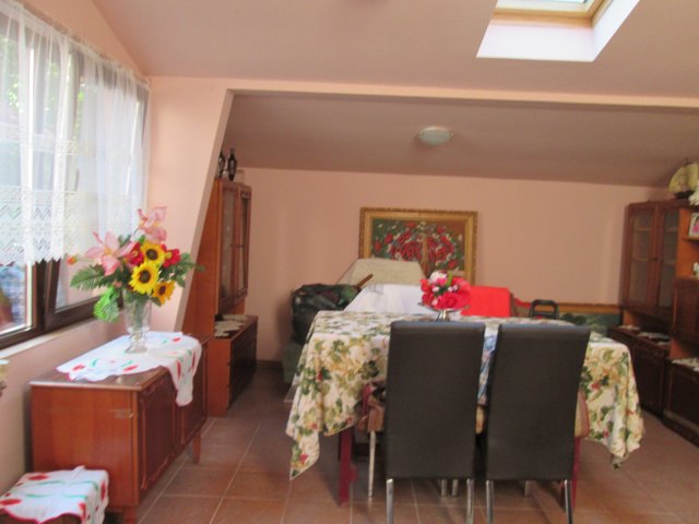 CASA P+M DE VANZARE PE DRUMUL DE BAITA. Parter: garaj, camera micocentrale pe lemn ( gazul la poarta )o camera in extensia casei, hol, bucatarie,baie, sufragerie, iesire pe terasa acoperita. Mansarda :hol, baie, doua dormitoare, balcon.Curtea amenajata cu un foisor, balansoar, fantana, se foloseste fosa septica dar este canalizare.